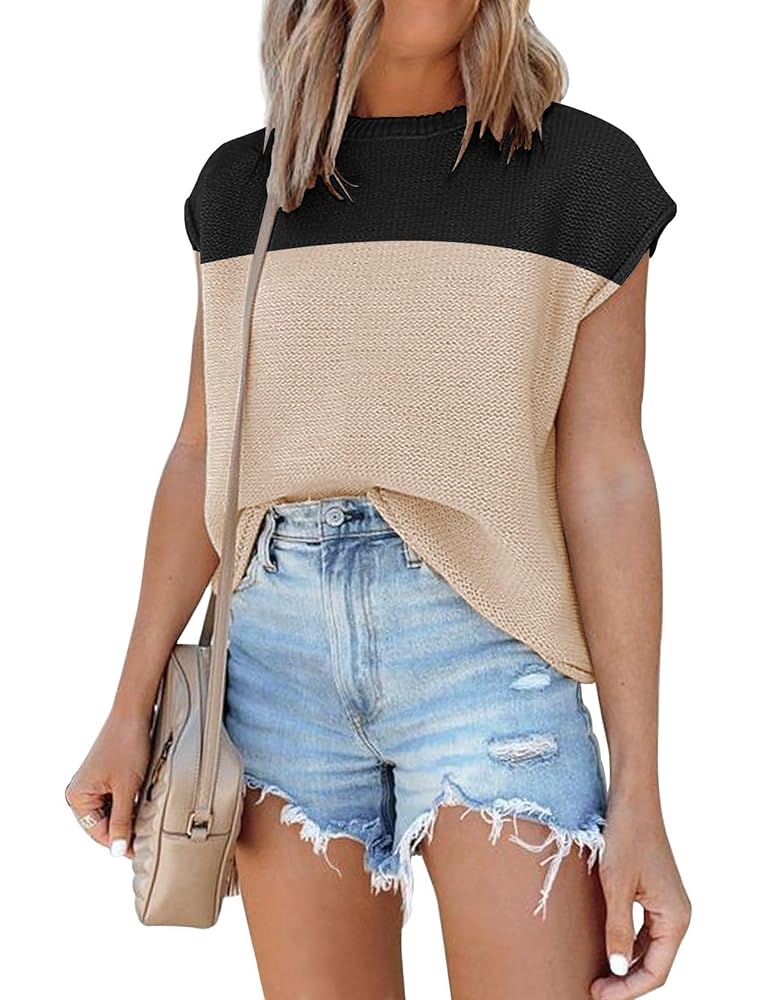 Cap-Sleeve Sweater Vest – Soft Knit Crewneck Tank Top