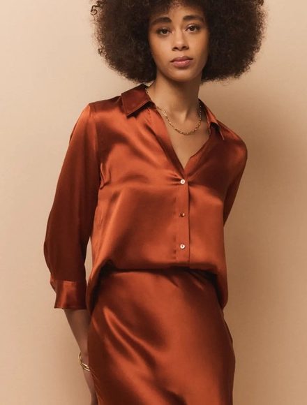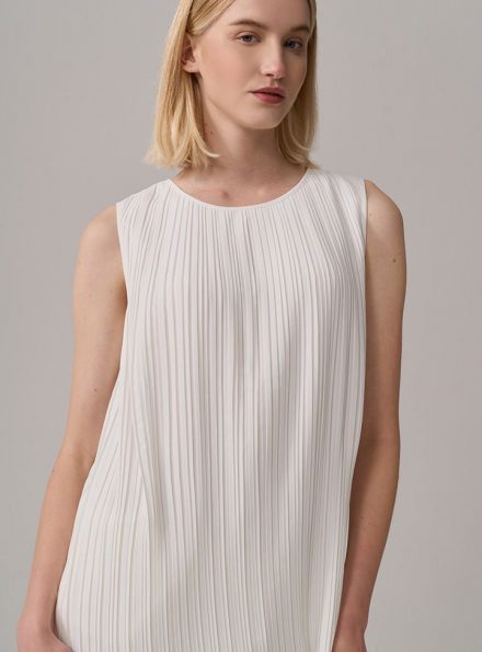 Roman UK Stone Satin Pleated Tie-Neck Top