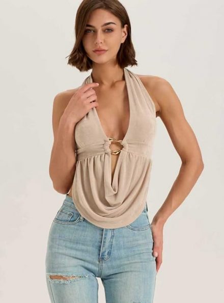 Y2K-Inspired V-Neck Halter Top – Sleeveless Backless Tie-Back
