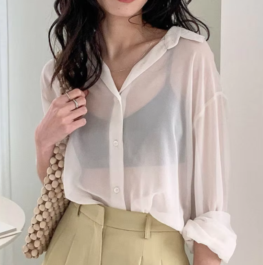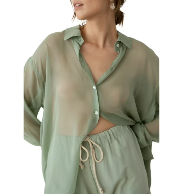 Women’s Polyester Long-Sleeve V-Neck Button-Down Shirt