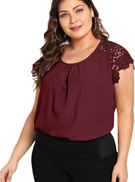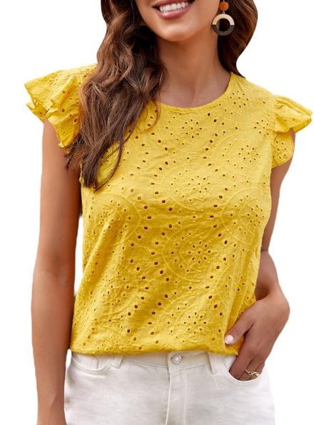 Floral Petal Cap-Sleeve Pleated Blouse