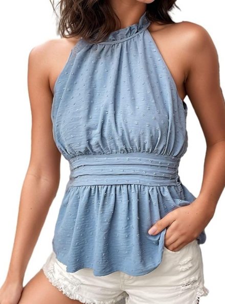 Halter Neck Peplum Tank Top – Smocked Waist, Sleeveless Summer Top