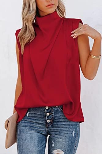 Loose Satin Cap-Sleeve Blouse – High Cowl Neck, Red