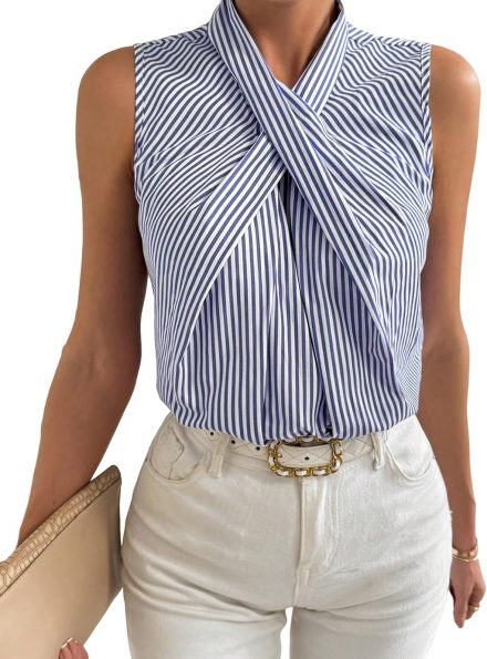 Loose Satin Cap-Sleeve Blouse – High Cowl Neck, White